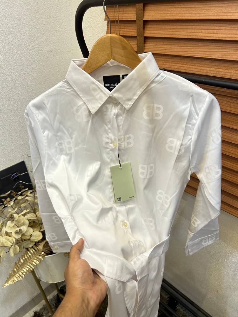 Dolc_e & Gabbana Imported Silk Fabric Self Monogram Print Premium Belted Dress For Women