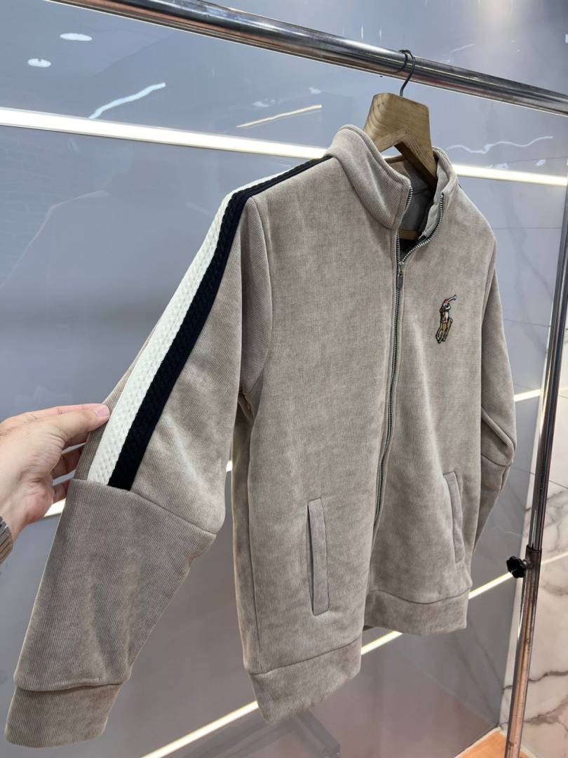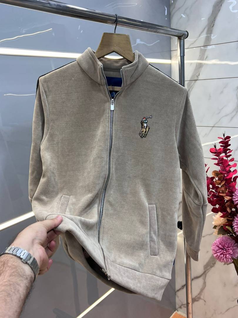 Ralph Laure n Beige Imported Knit bonded Fabric with HORSE Imp logo on front and knitting tape on arm Zipper 3584